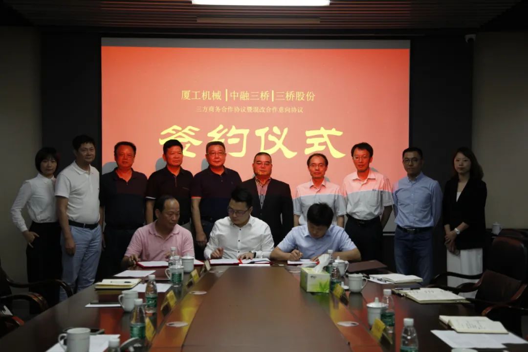 福建省機(jī)械工業(yè)聯(lián)合會(huì)會(huì)長許振明;廈工股份公司總裁林春明、副總裁兼財(cái)務(wù)總監(jiān)李喜勇、總工程師黃鶴艇;中融三橋公司蔡報(bào)軍、董事長姜洋、總經(jīng)理吳繼成出席簽約儀式。