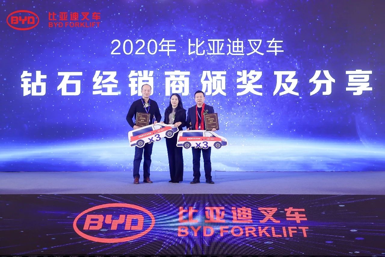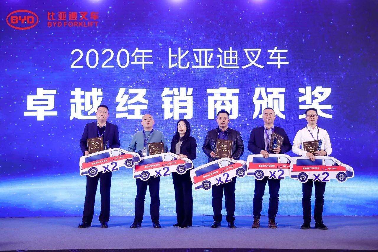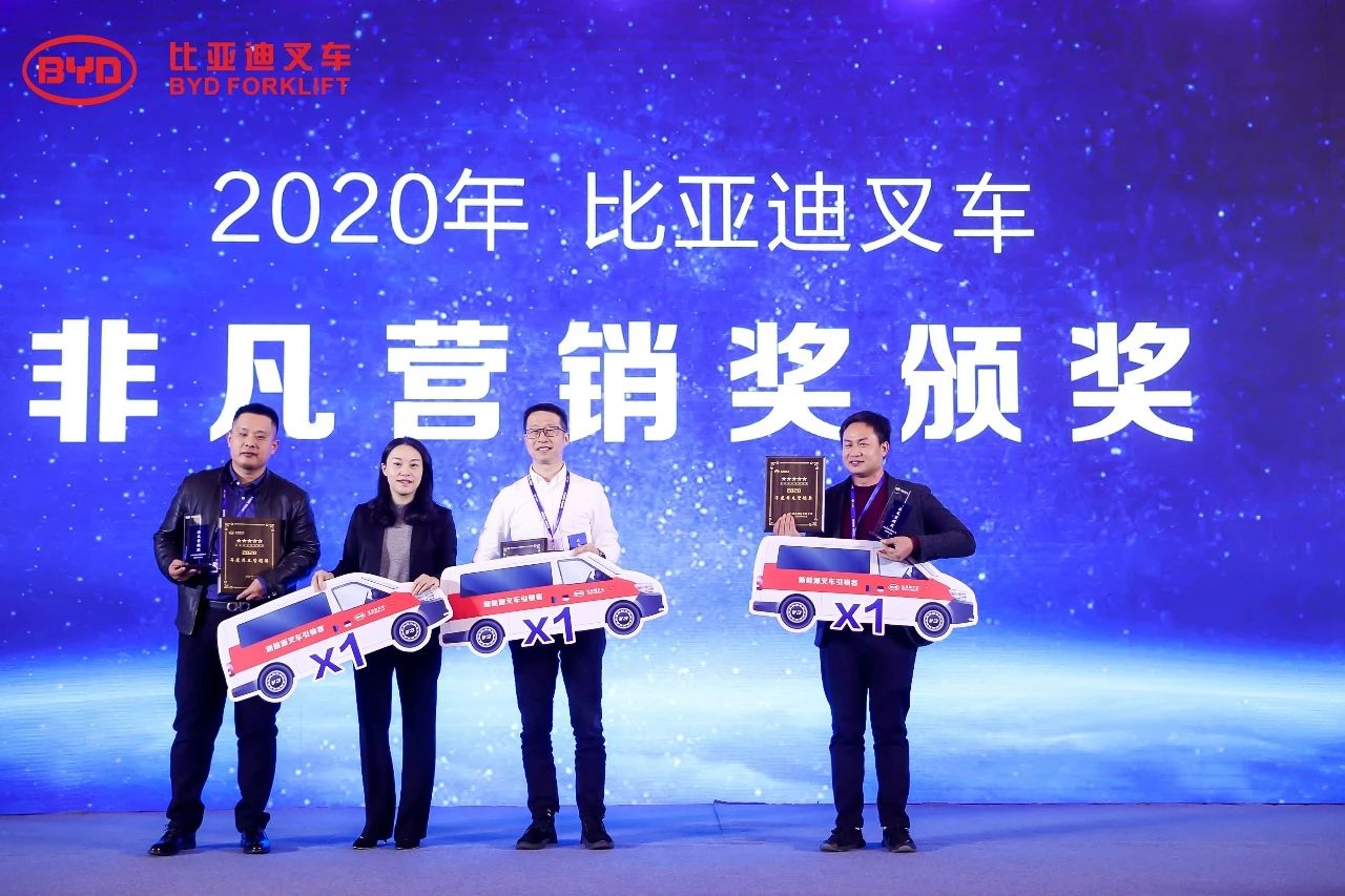 大會同時頒發(fā)了非凡營銷獎、卓越經(jīng)銷商獎項,也對在2020年銷售業(yè)績表現(xiàn)突出的經(jīng)銷商進行了獎勵,以感謝他們對比亞迪叉車發(fā)展做出的杰出貢獻。