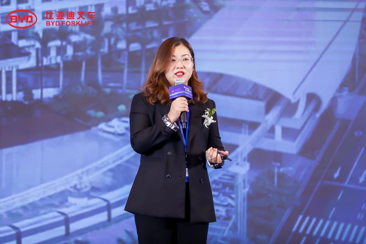 大會現(xiàn)場“高朋滿座,濟濟一堂”,比亞迪叉車國內(nèi)銷售總監(jiān)陳麗萍女士首先向在座來賓致歡迎辭。